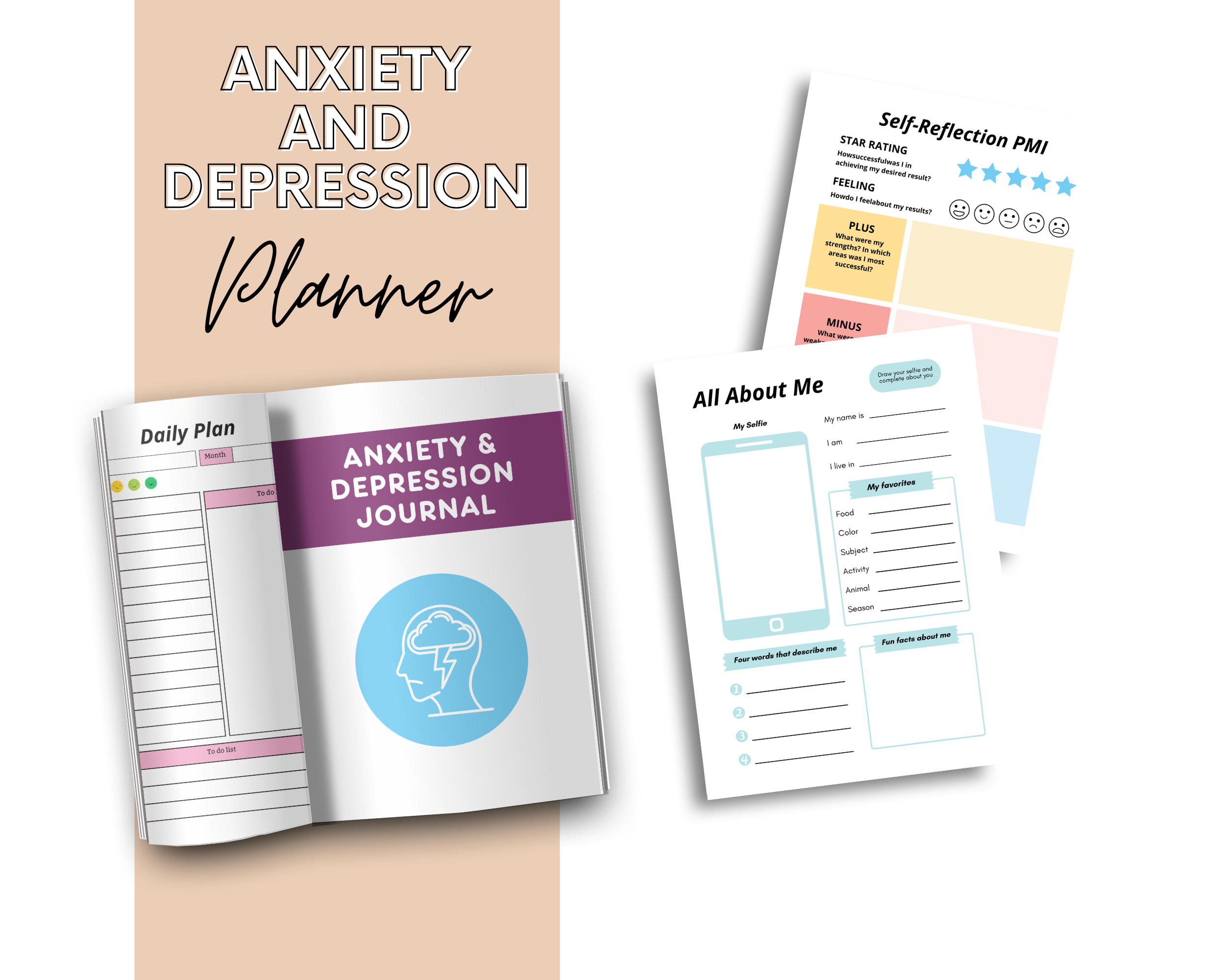 Anxiety and Depression Journal Printable, Mental Health Journal, Instant Download