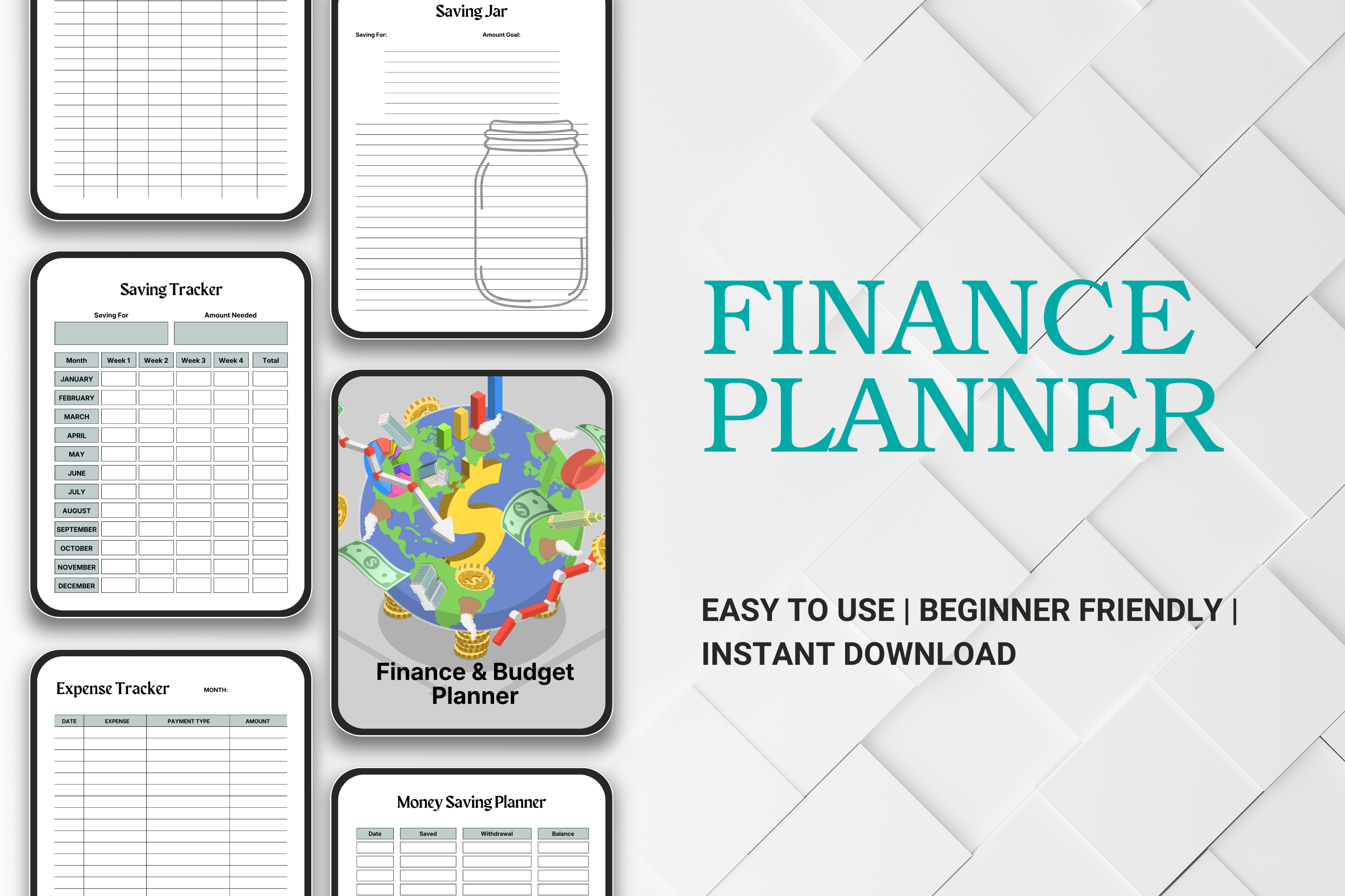 • Track income, expenses, and savings easily